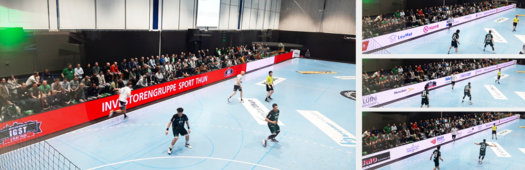 Anschliessend begeisterte das spannende Spiel zwischen Wacker Thun und RTV 1879 Basel das Publikum. Nach einer durchwachsenen ersten Halbzeit lagen die Thuner zur Pause mit 13:15 gegen den RTV 1879 Basel zurück. Doch nach dem Seitenwechsel zeigte Wacker Thun seine Stärke! Mit einer starken Teamleistung und der lautstarken Unterstützung in der Lachenhalle drehte das Team das Spiel und sicherte sich mit einem 30:26-Sieg zwei wichtige Punkte.