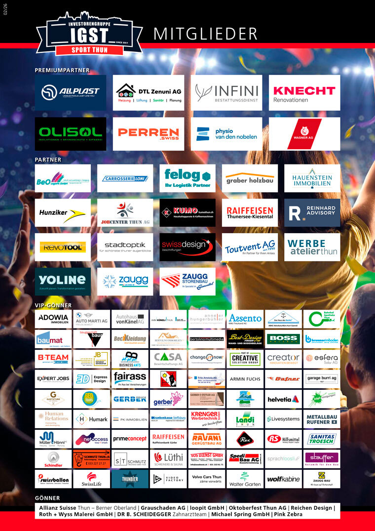 Neu ist das Datum für den einen Spielbesuch beim UHC Thun bekannt (dieses Jahr anstelle des Fondue-Events beim EHC Thun, welcher aufgrund des Stadionumbaus nicht stattfinden kann). Also falls nicht schon geschehen, trag dir den 25. Oktober 2025 im Kalender ein! Die Einladung folgt.
